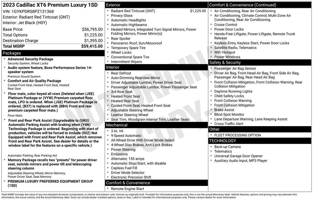 - Vehicle Name: Cadillac XT6