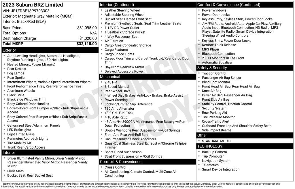 - Vehicle Name: Subaru BRZ